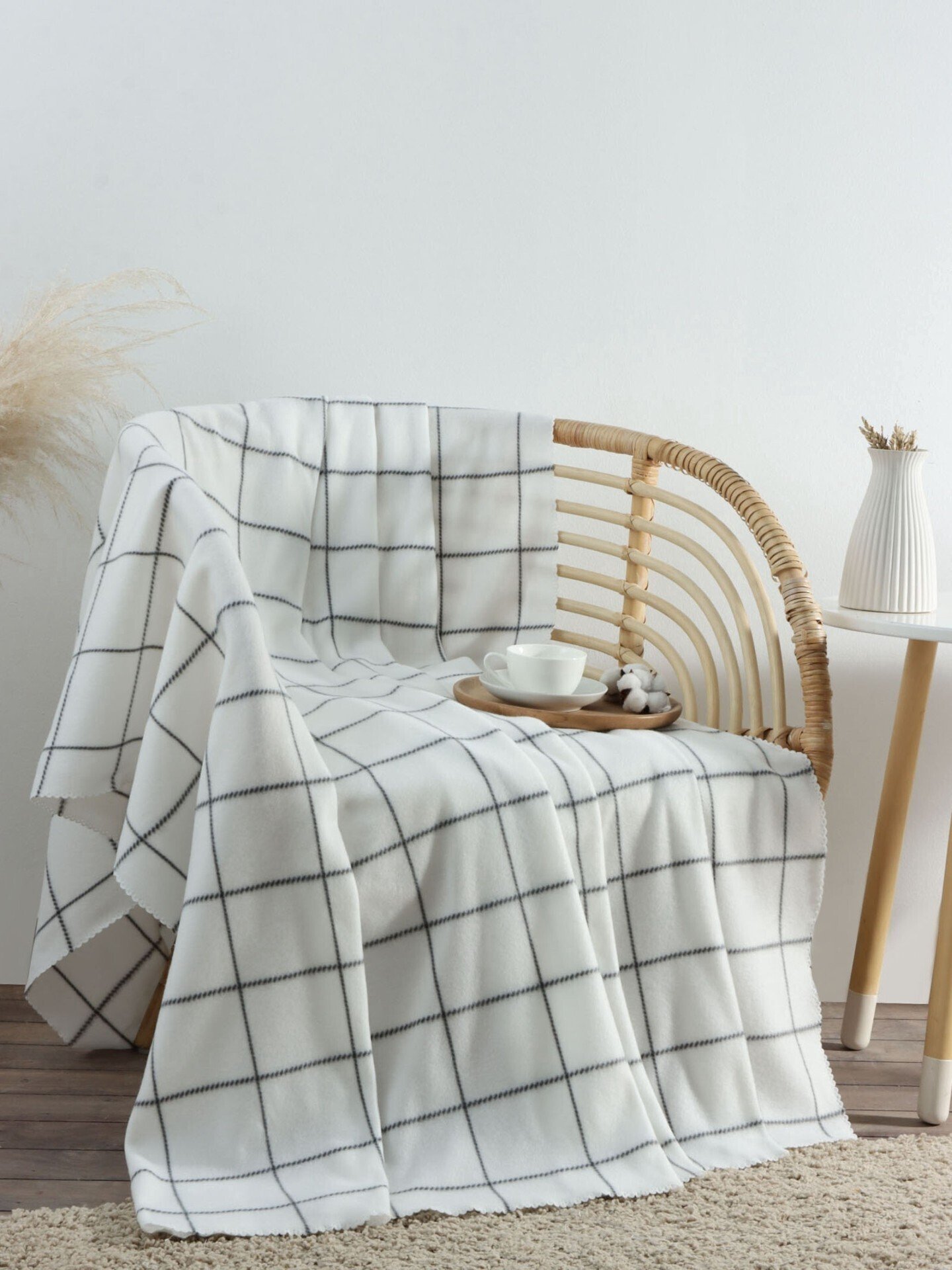 Этот белый флисовый плед в клетку — ваш верный помощник для комфорта в любой сезон. Мягкий и тёплый, он создаст уютную атмосферу для отдыха на диване, станет практичным дополнением к односпальному или полутораспальному комплекту постельного белья. Его универсальный дизайн легко впишется в интерьер спальни или гостиной.