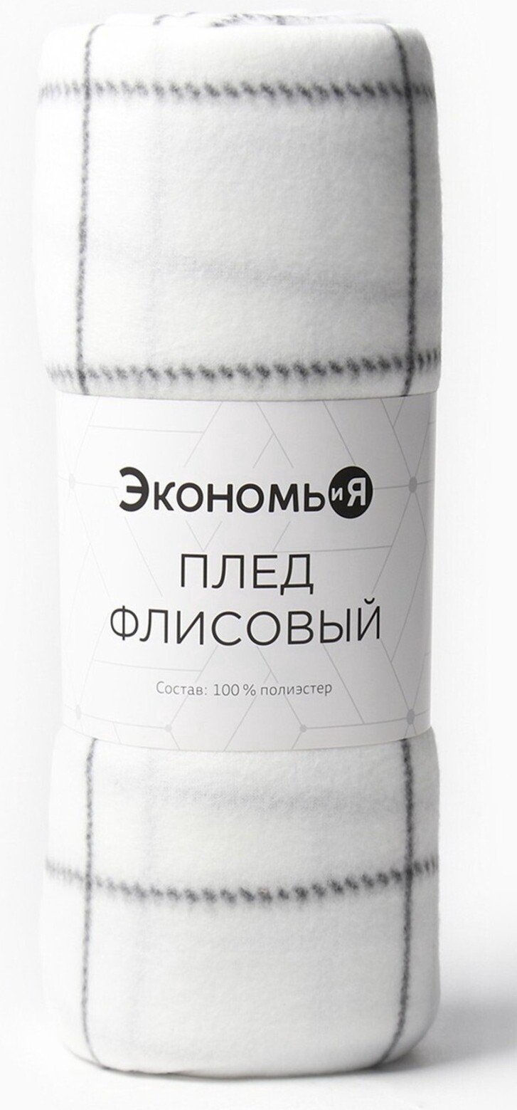 - Плед Экономь и Я Клетка 150х180см флис, белый