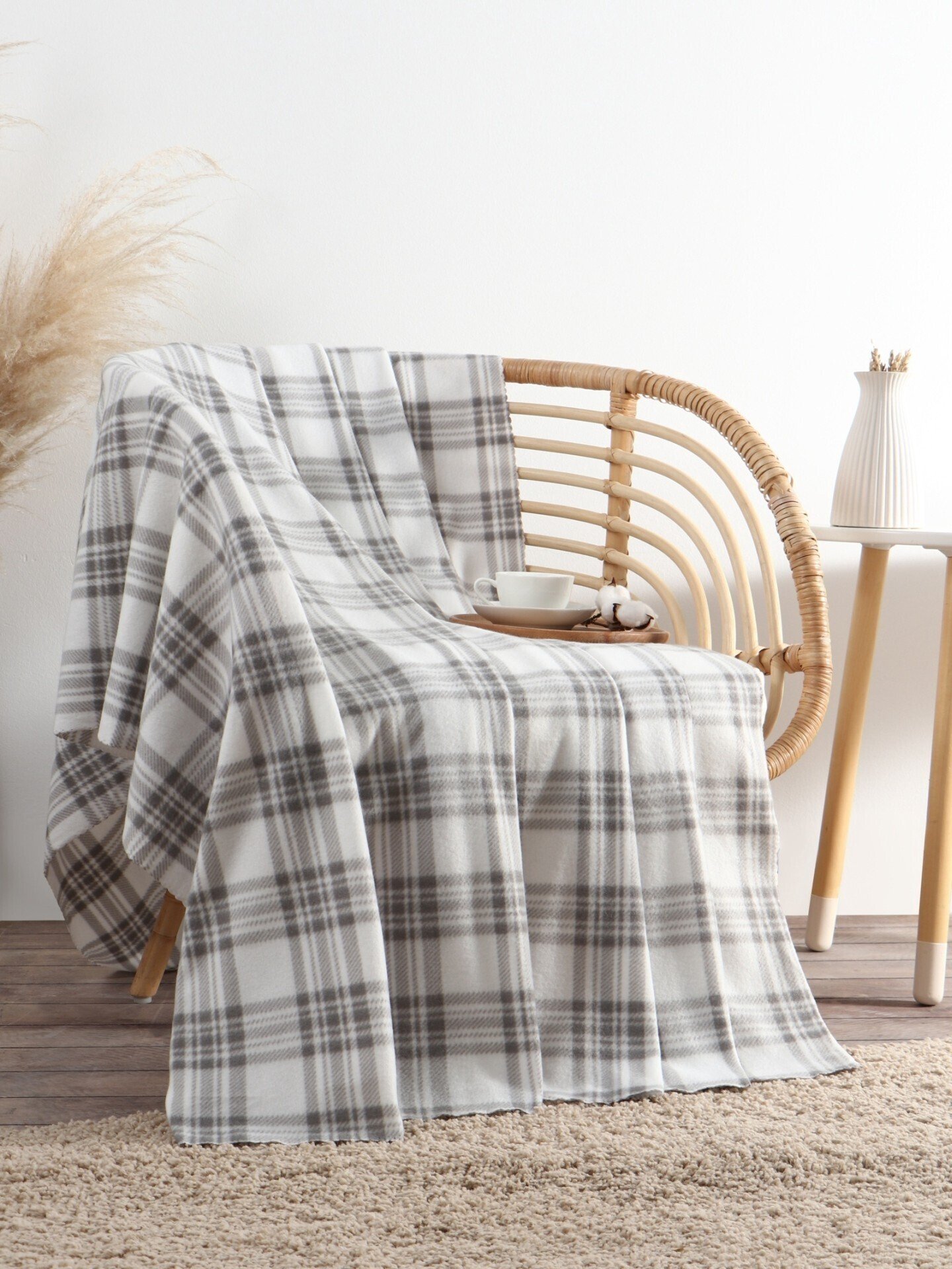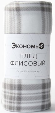 - Плед Экономь и Я Клетка 150х180см флис, черно-белый