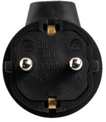 Прочный каучуковый корпус защищает вилку от ударов и истирания, а наличие заземления гарантирует электробезопасность при использовании мощных приборов.